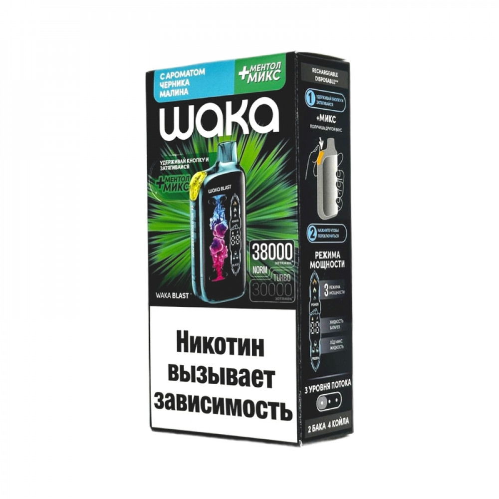 WAKA BLAST 38000 Hard - Черника малина + ментол микс - купить в Кыштыме